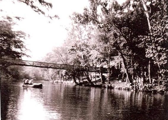 Photo Caption: Swinging bridge over Little Sequatchie River. The only access point for Camp Glancy. This area served as the waterfront for camp.