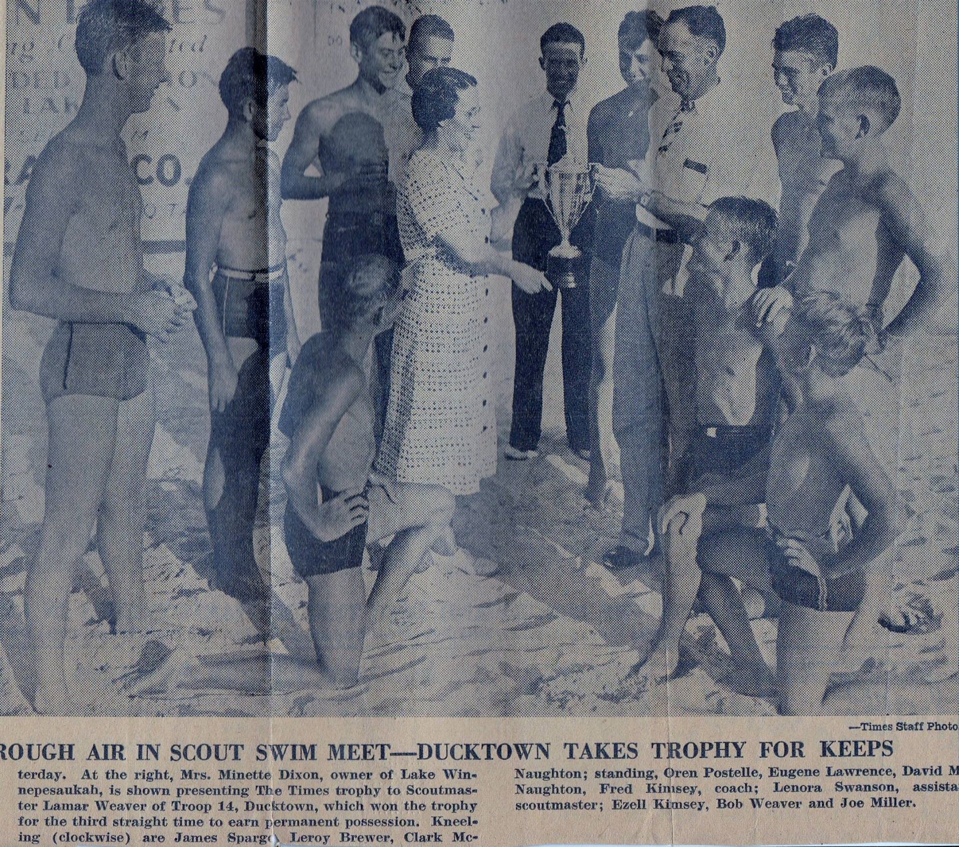In 1928, Ducktown Troop 14 first registered with the Cumberland Council, moving to the Chattanooga Council in 1931. There is also some evidence of Scouts in Ducktown earlier.  They were under the leadership of Lamar Weaver, who helped build a swimming lake with cabins outside Ducktown that was named in his honor, “Lake Lamar.” With frequent swimming practice at Lake Lamar, Copperhill and Ducktown Scouts often won competitions at Lake Winnepesaukah all through the 1930s-1950s. James Howell was Troop 14’s first Eagle Scout in 1931, and since then they have boasted over 25 Eagles. Into the 1980s, scouts took part in tree planting programs to remediate the environmental damage of the mining that led to the infamous “red hills.” With proximity to vast acres of National Forest, Scouts of the Copper Basin had exceptional wilderness experiences, many remembering long trips up Big Frog Mountain. They carried on an almost 100 year tradition of wearing wide brim campaign scout hats, which you may recall the late scoutmaster Phil Sheffer always sported. Sadly COVID and other factors caused the troop to have to disband, close to their 100th anniversary, but their memory lives on!