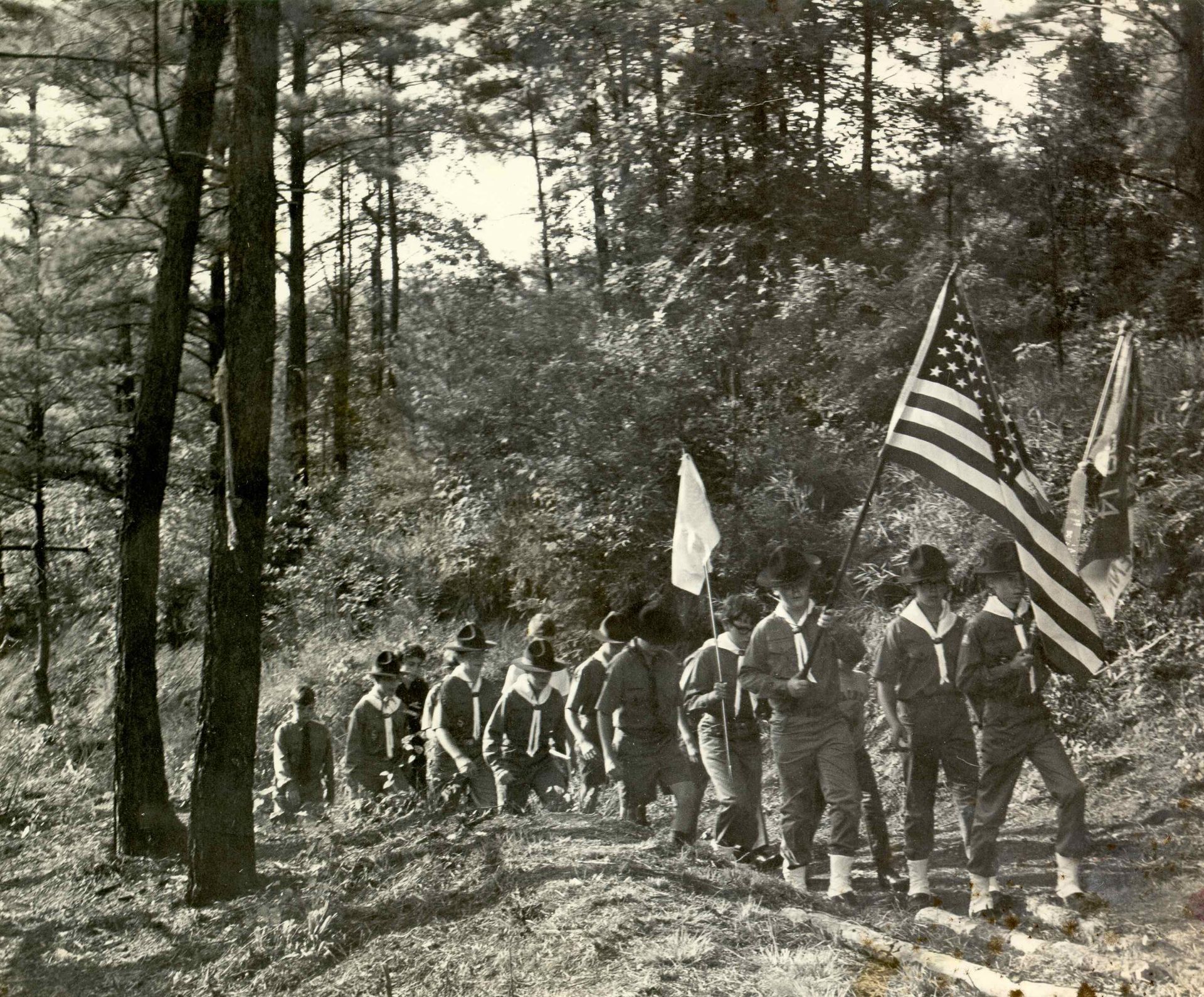 In 1928 Ducktown Troop 14 first registered with the Cumberland Council, moving to the Chattanooga Council in 1931. There is also some evidence of Scouts in Ducktown earlier. They were under the leadership of Lamar Weaver, who helped build a swimming lake with cabins outside Ducktown that was named in his honor, “Lake Lamar.” With frequent swimming practice at Lake Lamar, Copperhill and Ducktown Scouts often won competitions at Lake Winnepesaukah all through the 1930s-1950s. James Howell was Troop 14’s first Eagle Scout in 1931, and since then they have boasted over 25 Eagles. Into the 1980s, scouts took part in tree planting programs to remediate the environmental damage of the mining that led to the infamous “red hills.” With proximity to vast acres of National Forest, Scouts of the Copper Basin had exceptional wilderness experiences, many remembering long trips up Big Frog Mountain. They carried on an almost 100 year tradition of wearing wide brim campaign scout hats, which you may recall the late scoutmaster Phil Sheffer always sported. Sadly COVID and other factors caused the troop to have to disband, close to their 100th anniversary, but their memory lives on!